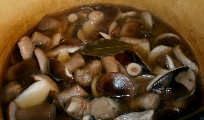 - Au bout de 20 jours, lorsque les champignons sont recouverts de saumure, ils sont transférés dans des bocaux en verre et versés avec la même saumure.