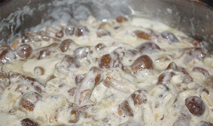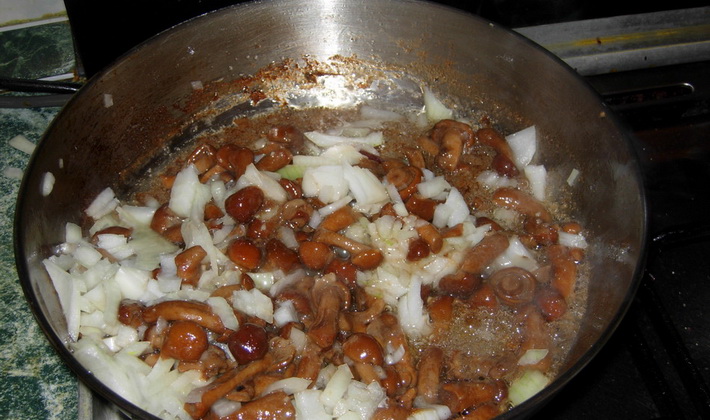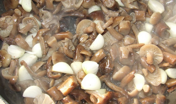 - Les champignons de miel sont frits dans une petite quantité d'huile jusqu'à coloration dorée.