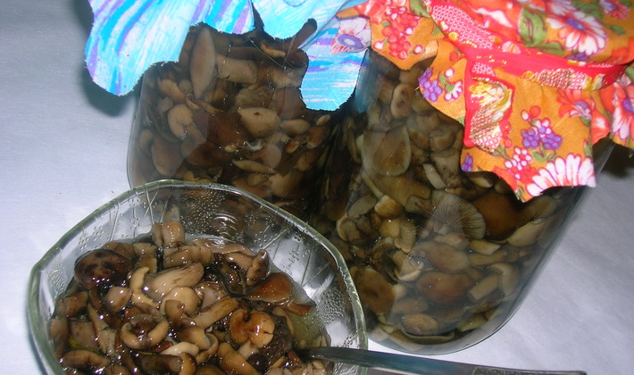 Il est intéressant de noter que, comme agent de conservation pour la cuisson des agarics au miel et leur récolte pour l'hiver, la graisse est toujours utilisée: beurre ou huile végétale, ainsi que lard fondu au saindoux. Les plus délicieux, beaucoup considèrent les préparations de champignons frites dans un mélange de graisses.