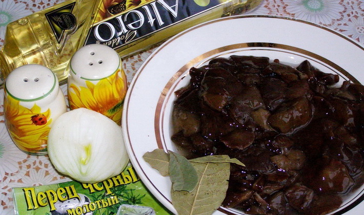 La recette de champignons au miel rôtis cuits pour l'hiver dans de l'huile aux oignons est préparée comme suit: