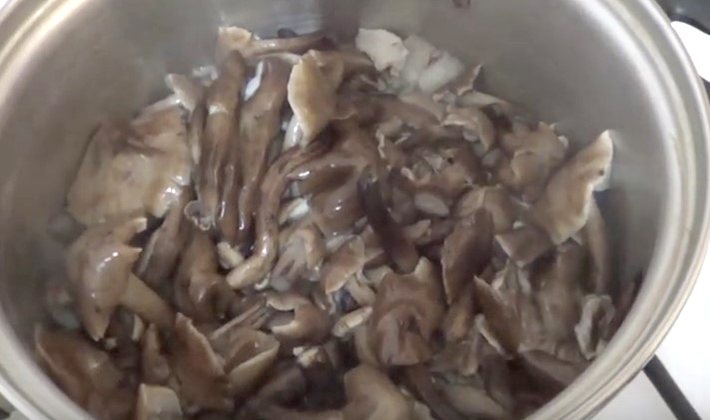 - Faire bouillir les champignons pendant 20 minutes, rincer et bien égoutter.