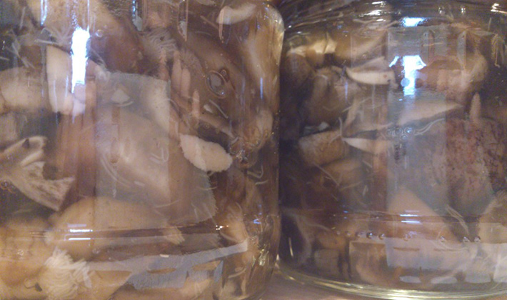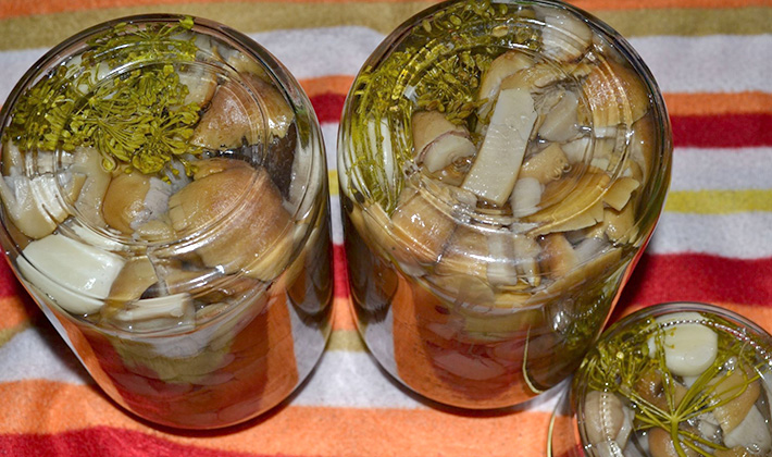 - Laissez les champignons bouillir dans la marinade pendant 15 minutes et mettez-les dans des bocaux.