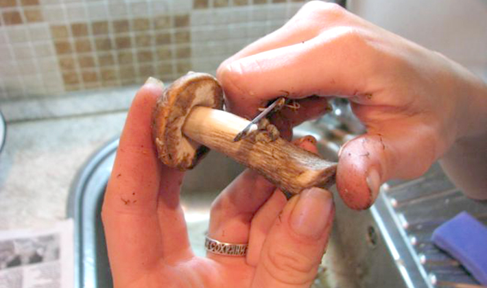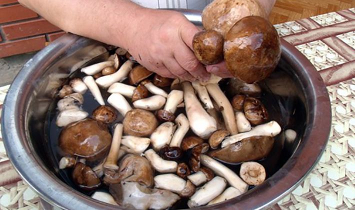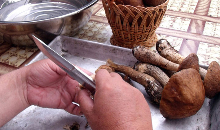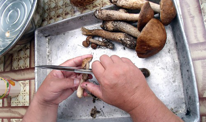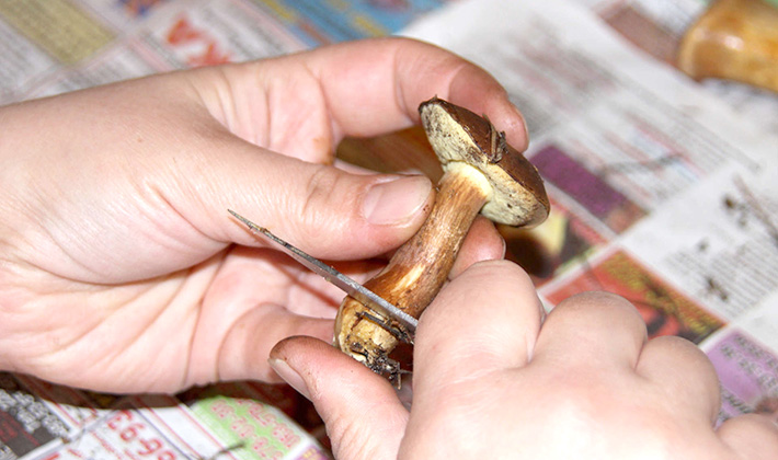 Après avoir coupé le champignon, vérifiez s'il est ver. De plus, en coupant les champignons au couteau, nous réduisons le risque de contamination par adhérence au sol. Les champignons récoltés sont immédiatement nettoyés de la terre, des feuilles, des aiguilles, de l'herbe et d'autres débris qui y adhèrent; enlever les parties affectées par les larves d'insectes. Les parties inférieures des jambes très souillées sont coupées. En mettant les champignons dans le panier plus correctement avec les bouchons, ils sont ainsi mieux conservés.