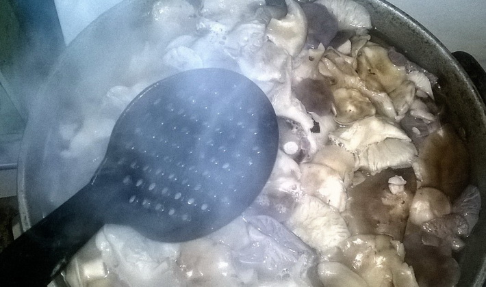 - Verser les rangées nettoyées et lavées avec de l'eau froide et laisser reposer 12-15 heures, ou 2 jours si les champignons sont très amers.