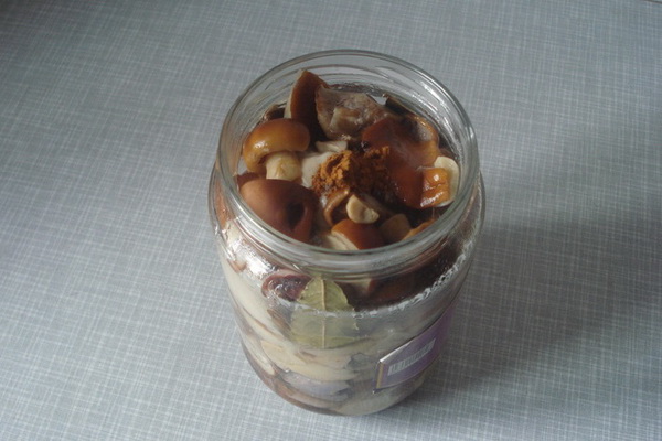 Une fois la phase préparatoire terminée (nettoyage et ébullition), vous pouvez procéder en toute sécurité à la conservation des champignons mazoutés à la maison. Nous suggérons d'utiliser une recette de moutarde marinée. Un tel blanc fera sûrement appel à vous et à votre ménage.