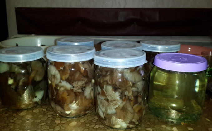 Après cette période, nous couvrons les banques avec des couvercles en plastique et les rangons dans le réfrigérateur. Après 20 à 30 jours, les champignons marinés sont prêts à être utilisés. Le processus de fermentation des champignons améliore seulement leur goût et leur digestibilité.