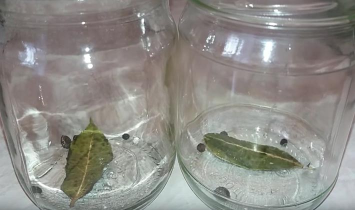 - Dans des pots stérilisés, étalez les feuilles de cassis, ½ partie d'ail émincé et ½ partie de girofle.