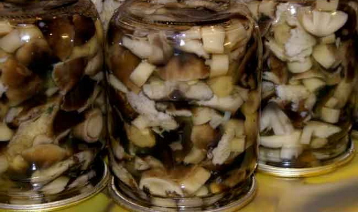 Nous répartissons les champignons et la marinade sur les bocaux stérilisés et les enroulons.Vous pouvez les refermer avec des gaines en nylon bouillies, les laisser refroidir et les sortir dans un lieu de stockage frais.