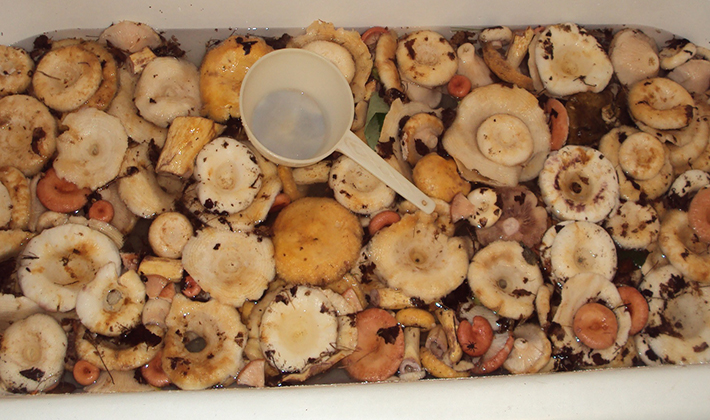 Les champignons marinés sont conservés pendant environ 1 mois.