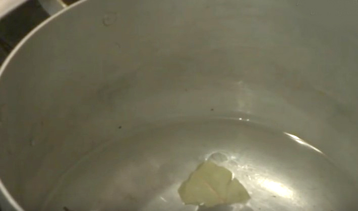 - Les champignons au miel sont versés avec de l’eau fraîche de la recette, du sel, du sucre, de l’ail haché, du laurier et un mélange de poivrons sont introduits, 10 minutes pour tout faire bouillir.