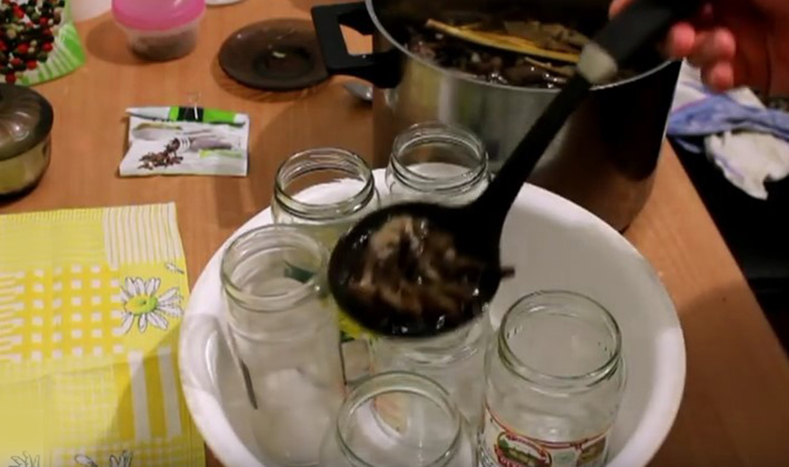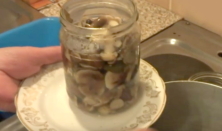 - Nous étalons les champignons dans des bocaux et versons la marinade jusqu'au cou.