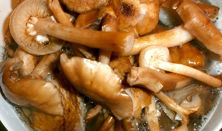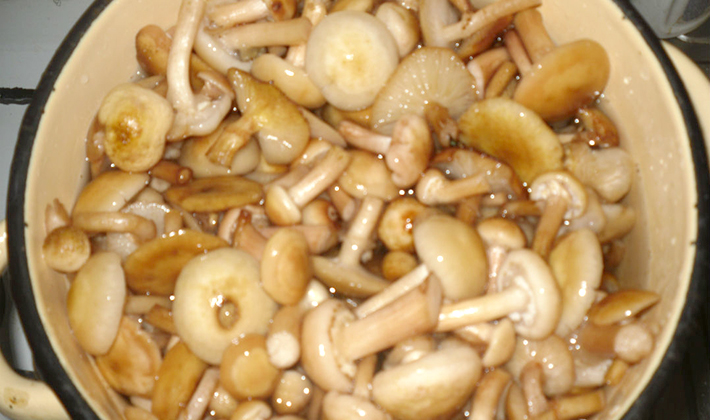 - Le miel de champignons nettoyer, rincer et faire bouillir dans l'eau pendant 25 minutes.