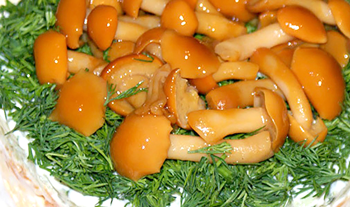Les champignons au miel marinés avec de l'ail et de l'aneth seront un excellent apéritif froid pour toute table de fête.