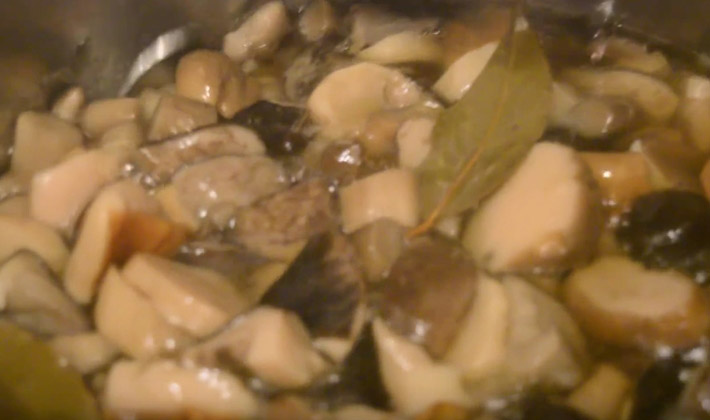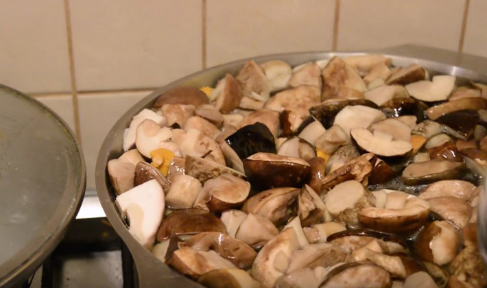 - Le vinaigre est versé, tout est bouilli pendant 5 minutes et les cèpes bouillies sont introduits.