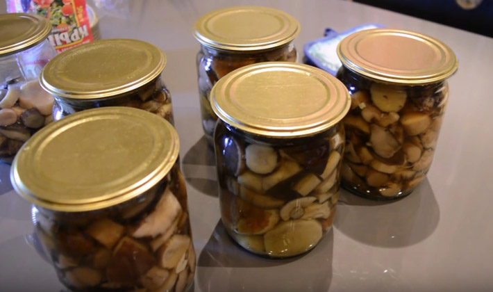 - Le vinaigre est versé dans la marinade, bouilli pendant 15 minutes, les champignons sont coulés et recouverts de couvercles.