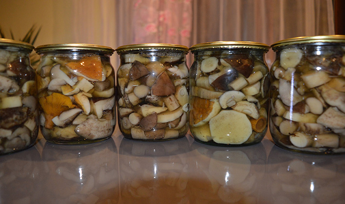 - Verser les champignons avec la marinade, fermer avec les couvercles serrés et réchauffer avec une vieille couverture.