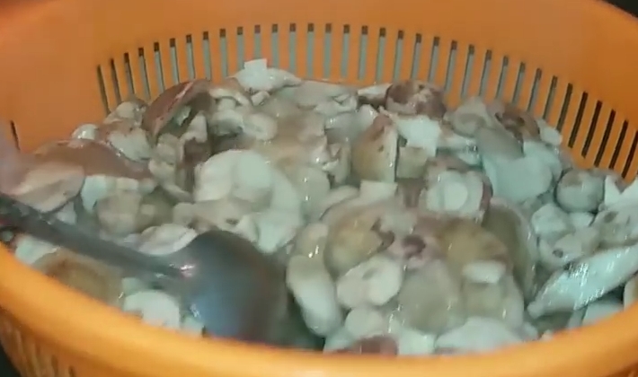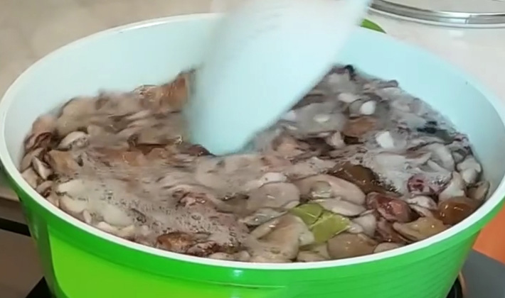 - Faites bouillir les champignons dans de l'eau salée pendant 30 minutes, retirez-les et laissez égoutter.