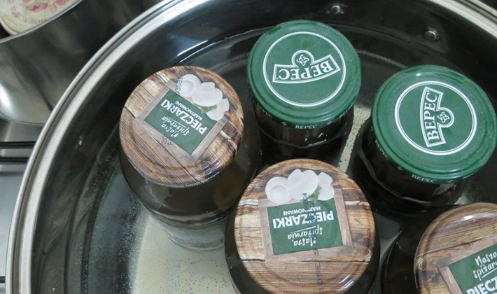 Ensuite, ils sont placés dans une casserole avec de l'eau chauffée à 70 ° C pour la stérilisation, qui doit être effectuée à ébullition pendant 30 minutes.
