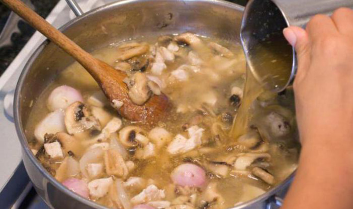 Terminer la cuisson dès que les champignons ont coulé au fond et que la marinade se soit éclaircie.