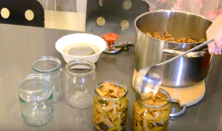 Comment faire cuire les girolles marinées pour l'hiver, montrera les étapes suivantes: