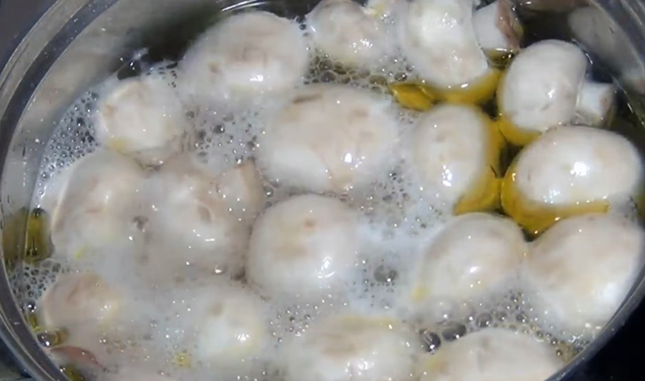 - Premièrement, les champignons pelés sont bouillis pendant 15 minutes. dans de l'eau salée.