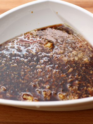 - Dans un récipient émaillé profond, mélanger la sauce de soja à l'huile, ajouter les autres épices spécifiées (hacher l'ail avec une râpe fine) et bien mélanger. Pour changer le goût des champignons dans la sauce, vous pouvez ajouter à votre goût de la mandarine, du citron, des graines de moutarde, de la crème sure, du sucre et d'autres épices.