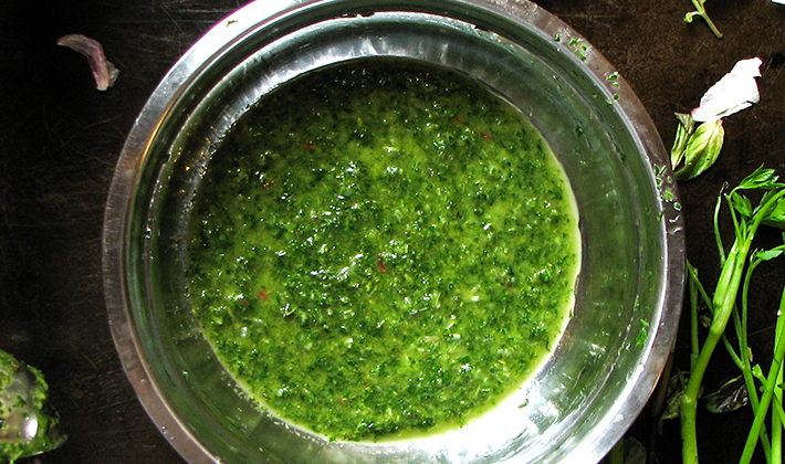 Nous combinons toutes les épices dans l'eau, y compris les herbes finement hachées et le vinaigre.