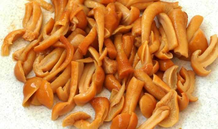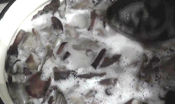 - Les champignons sont nettoyés, lavés et cuits à l'eau avec 1 c. À soupe. l sel 30 minutes