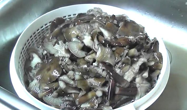 - Versez de l'eau salée froide et laissez reposer pendant 20 minutes afin que le sable et les larves d'insectes sortent des champignons.