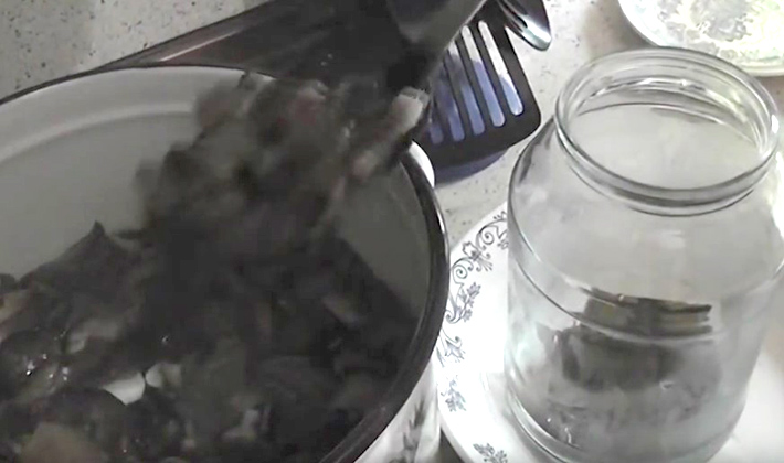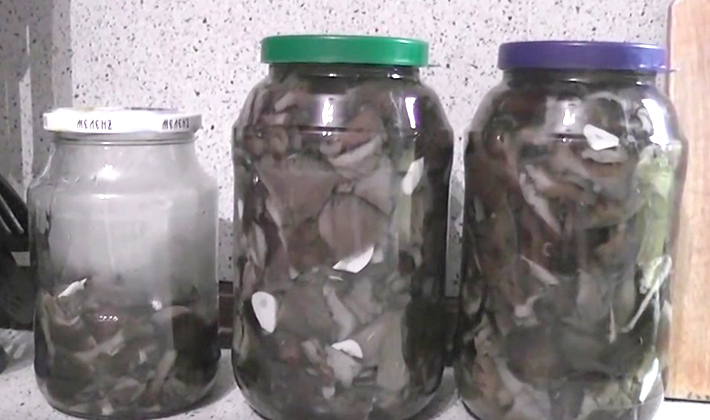 - Les champignons sont versés avec la marinade dans des pots stérilisés, fermés avec des couvercles étanches.