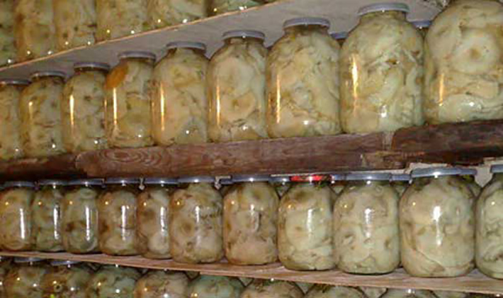 La récolte des champignons marinés sans vinaigre et sans stérilisation est conservée au maximum 4 mois.