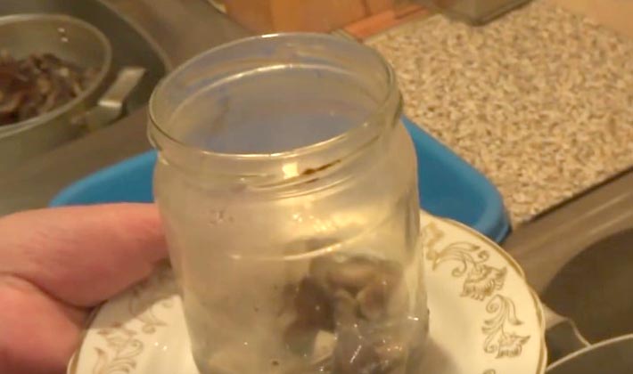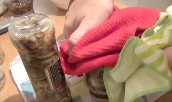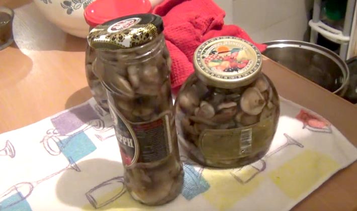 Mettez les champignons dans des conserves, remplissez de marinade, sans ajouter au dessus.