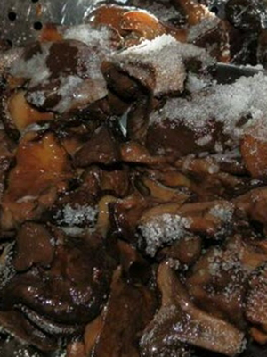 Une fois les champignons bouillis environ 20 minutes, il faut les laver à grande eau, les filtrer et les faire cuire à nouveau. Cette fois environ une heure;