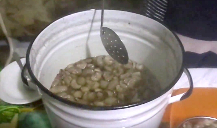 - Nous faisons bouillir pendant 25-30 minutes en éliminant constamment la mousse de la surface à l'aide d'une cuillère à égoutter.