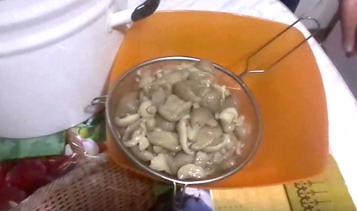 - Faites bouillir les champignons avec de l'acide citrique pendant 10 minutes et mettez-les dans des bocaux.