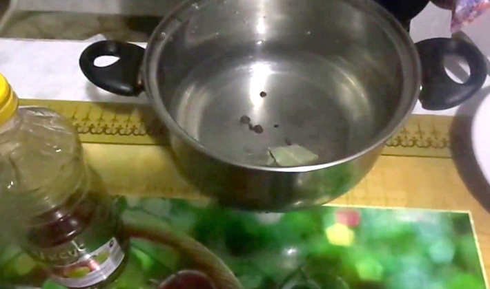 - L'eau est drainée et versée avec une nouvelle eau, on la laisse bouillir et on y introduit le sel, le sucre, l'aneth, le laurier et la moutarde.