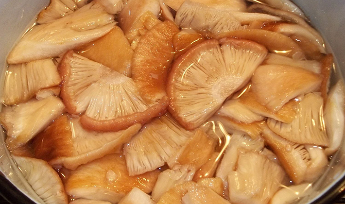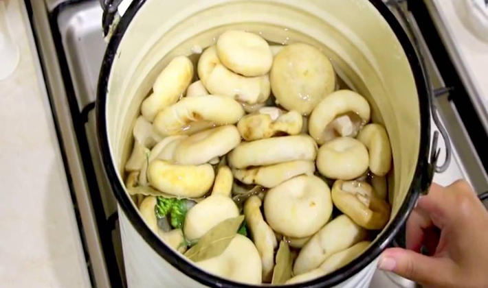 Pour le marinage, sélectionnez des petits champignons ou coupez-les en gros morceaux. Épluchez les champignons, rincez-les à l'eau froide et placez-les sur une passoire, laissez l'eau s'écouler. Ensuite, faites bouillir les champignons dans une petite quantité d’eau ou sans ajouter d’eau pendant 5 à 10 minutes. Dans un autre bol, faites bouillir de l’eau (plusieurs minutes) avec du piment, des oignons et des carottes émincés, ajoutez du vinaigre jusqu’à la fin de la cuisson. Trempez les champignons légèrement séchés dans la marinade et laissez cuire pendant 4 à 5 minutes.