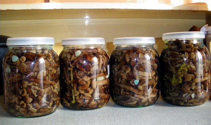- Nous sortons les champignons au miel et les mettons dans des pots préparés.