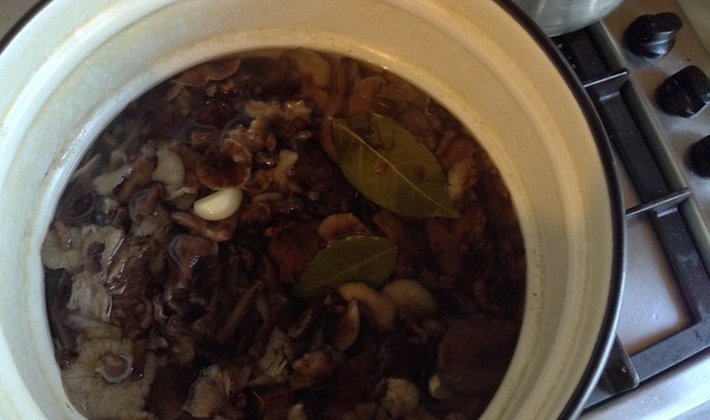 - Nous sortons les champignons de l'eau et les mettons dans la marinade bouillante, faisons cuire 20 minutes.