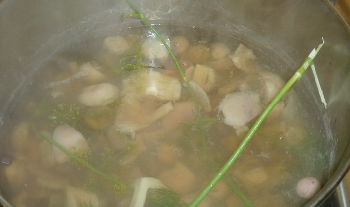 - Mettez la russula dans une casserole et versez-les avec de l'eau chaude;