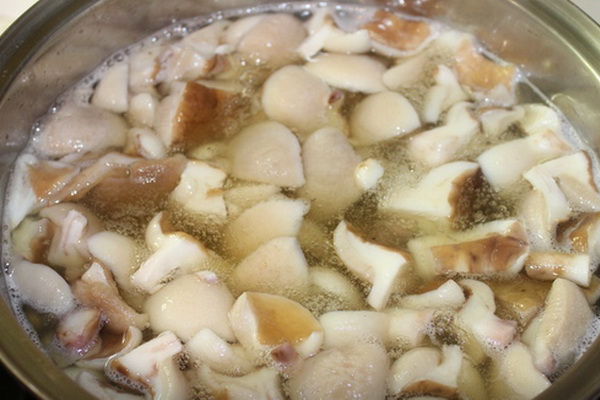 Comme mentionné précédemment, les champignons doivent être bouillis dans de l'eau salée, égouttés et coupés en morceaux.