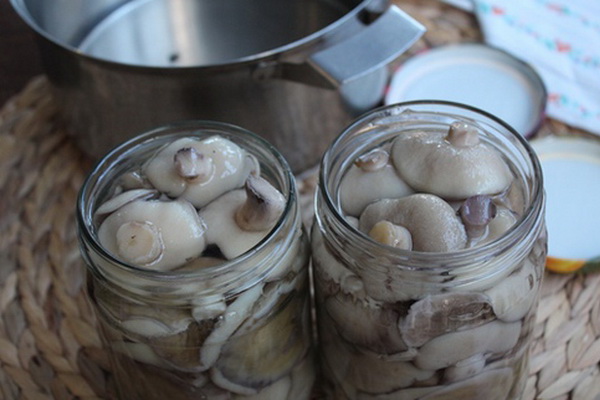 Disposer les champignons avec la marinade dans des bocaux et rouler.
