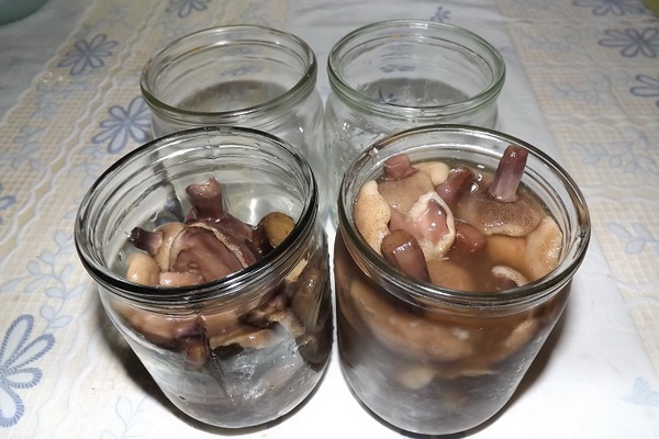 Dans cette recette, les pots ne doivent pas être stérilisés, l’essentiel est qu’ils soient bien lavés. Les pots seront immédiatement stérilisés avec des champignons marinés. Cependant, les bouchons à vis doivent être préalablement stérilisés.