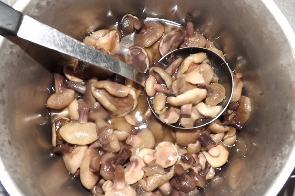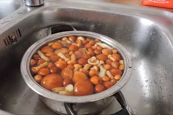 Après le processus le plus difficile, tout le reste, y compris le décapage, ne posera aucune difficulté, même pour les ménagères débutantes. Les huiles pré-nettoyées et lavées doivent être bouillies dans un récipient en émail avec une faible solution de vinaigre et de sel. Enlevez souvent la mousse formée à la surface et attendez que les champignons se déposent. Après environ 20-30 minutes, l'huile bouillante est prête, il faut les jeter dans une passoire et bien les rincer à l'eau courante.