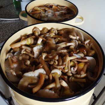 Ensuite, nous notons le processus de marinage, dans lequel la question se pose à nouveau: est-il nécessaire de faire tremper les champignons au miel avant le marinage? La meilleure option serait de laver les champignons sous le robinet dans une passoire. Mais ici, n’en faites pas trop, puisqu’un long séjour de champignons au miel dans l’eau entraînera une détérioration de leur consistance. Combien de temps les agarics au miel peuvent-ils être trempés dans de l'eau? Certains cueilleurs de champignons expérimentés affirment qu'il est préférable de ne pas les faire tremper du tout, mais de les verser sur de l'eau bouillante, ce qui les ramollira et évitera les risques de chute lors de la coupe. Mais si vous décidez encore de faire tremper les fructifications, effectuez cette procédure pendant 30 minutes.