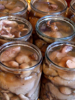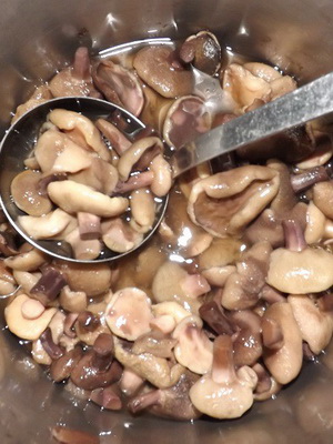 Mettez la saumure sur le feu et laissez mijoter pendant 30 à 35 minutes. À la fin, ajoutez ¼ d’Art. 9% d'acide acétique. Lorsque la marinade a refroidi, versez-les dans des pots de champignons.