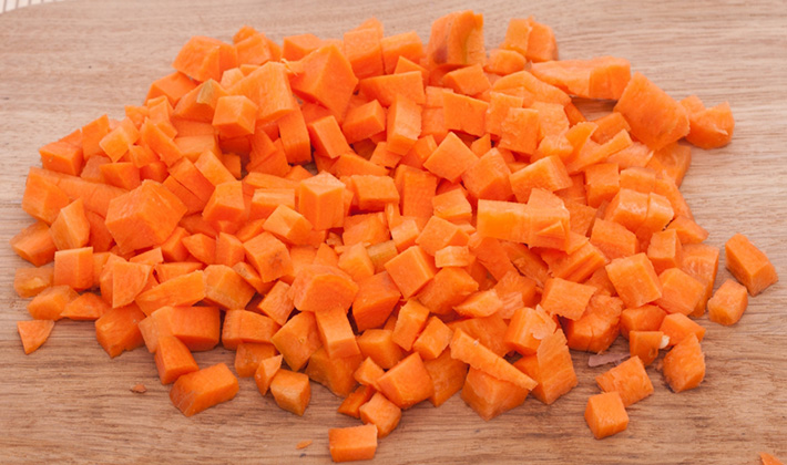 Épluchez les carottes, lavez-les et coupez-les en petits cubes.