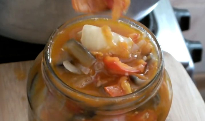 - Couvrir avec les couvercles et stériliser dans une casserole avec de l’eau chaude pendant 30 minutes.
