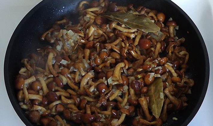 - Les champignons sont frits dans une petite quantité d'huile pendant 10-15 minutes.
