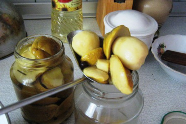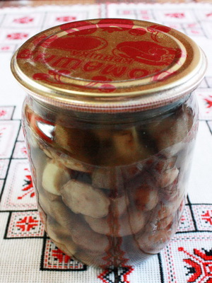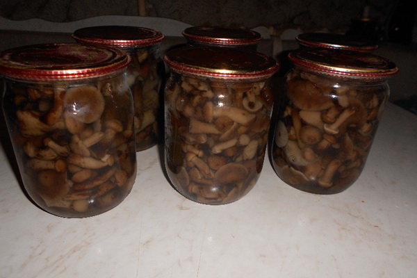 Les champignons préparés sont rapidement refroidis, placés dans des bocaux et versés avec une marinade refroidie. La marinade correctement bouillie est généralement translucide, propre et légèrement visqueuse.